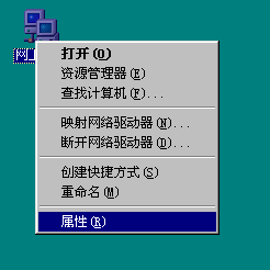 用右键单击“网上邻居”,选中菜单中“属性”项后左键单击,显示网络属性菜单