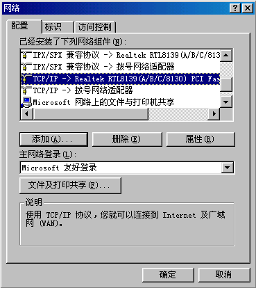 由于网卡自带驱动程序,只需按照系统提示在Windows 98/95中安装网卡,就可以成功安装网卡。
