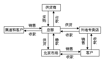 管理。所涉及的部门主要是流通事业部、北京市场、外地专卖店、财务部(应收和应付处理)。下面